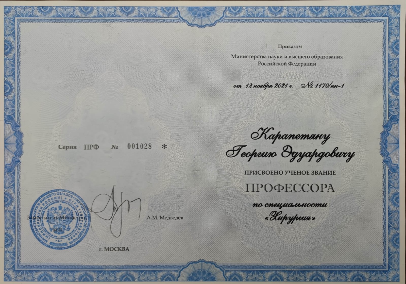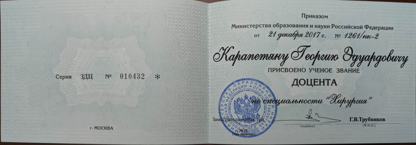 В 2014 году – получил высшую квалификационную категорию по специальности «Хирургия»