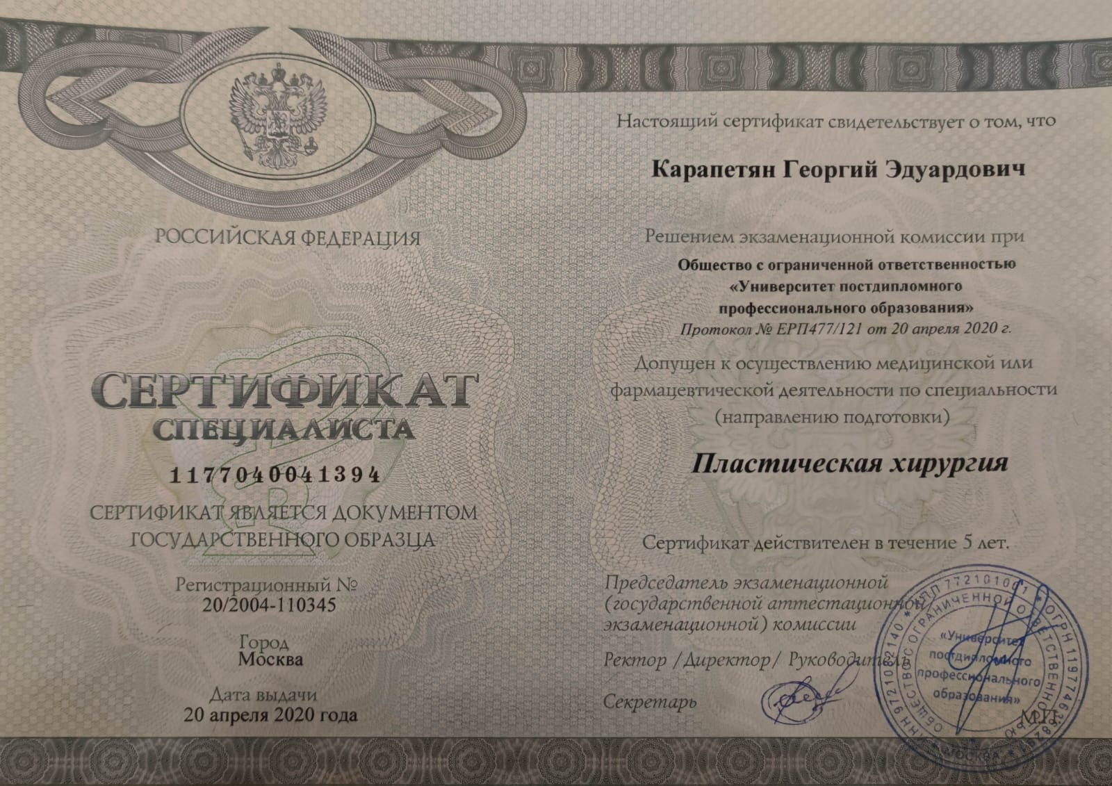 C 2019 по 2020 – пластический хирург Центра реконструктивной хирургии Дорожной клинической больницы ОАО «РЖД», города Санкт-Петербург